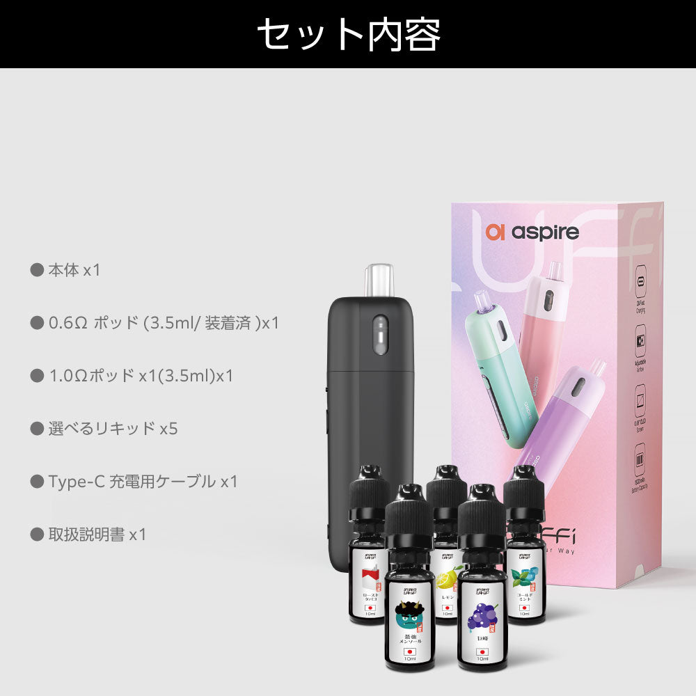 ⇒Aspire Fluffi (アスパイヤ フラッフィー) 交換用POD 2個とリキッド3本セットはコチラ