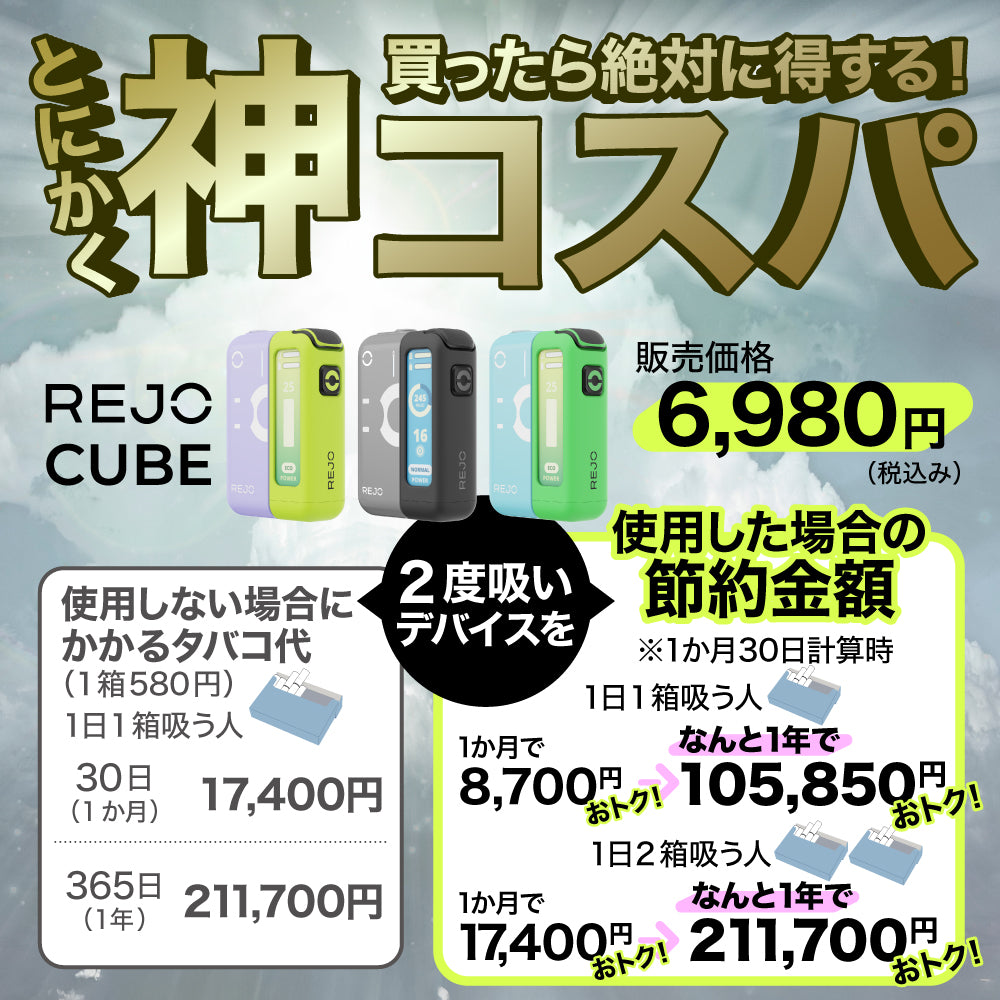 人気爆発中のTEREA(テリア)やSENTIA(センティア)のIQOSイルマ(アイコスイルマ)用スティックが ” この1台で2回吸える ” 革命的2度吸いデバイスが新鋭電子タバコブランドの ” REJO”(レジョ)から新登場!その名も「REJO CUBE」