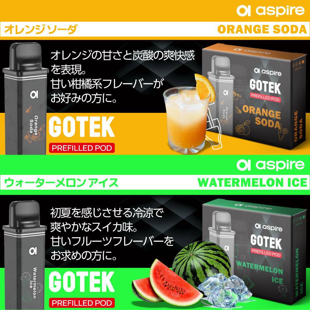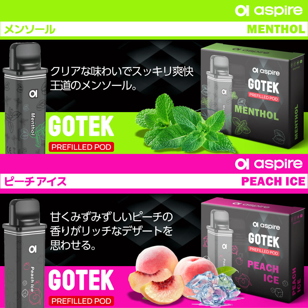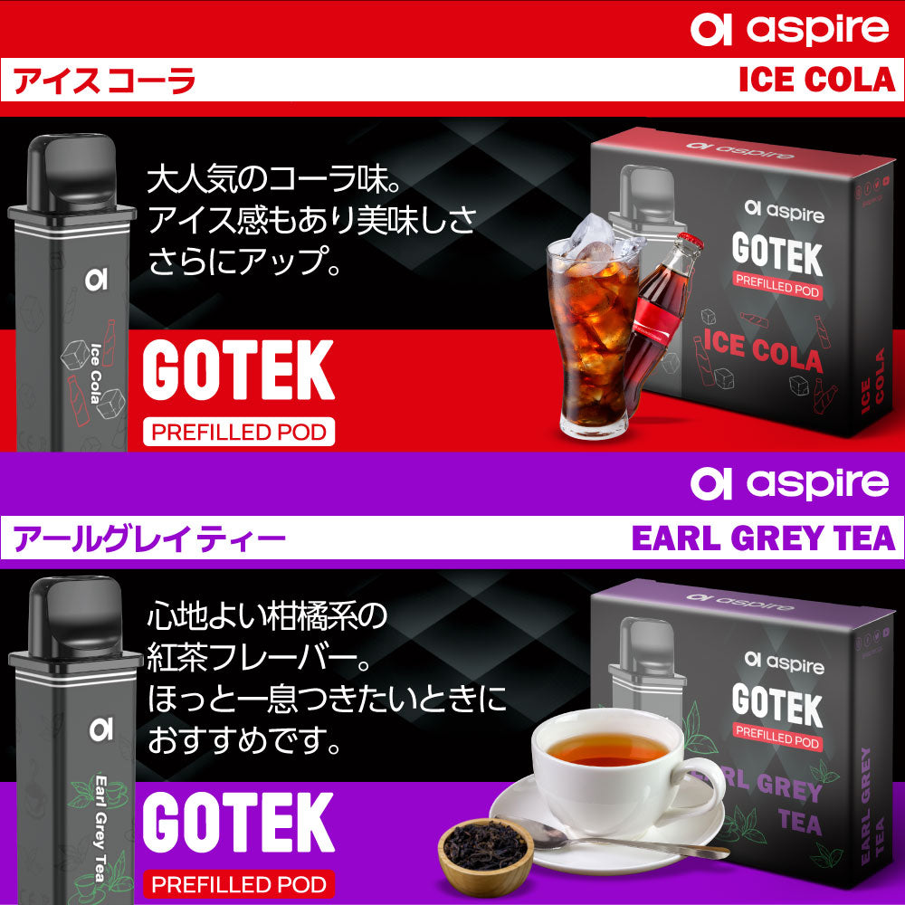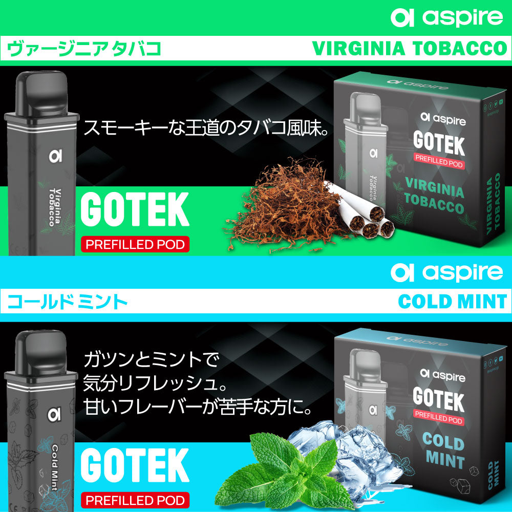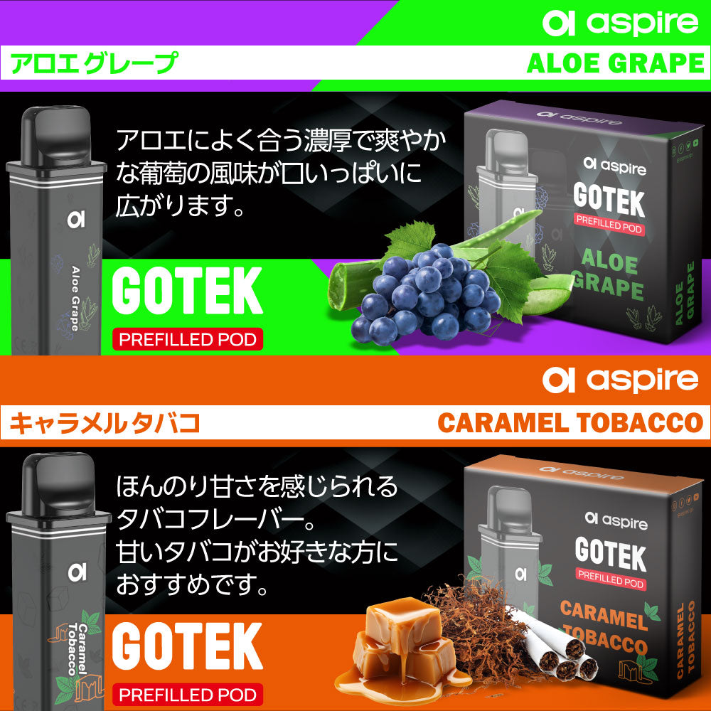 Aspire GOTEK (アスパイア ゴーテック)シリーズの交換用PODカートリッジ。2個セットになります。 |