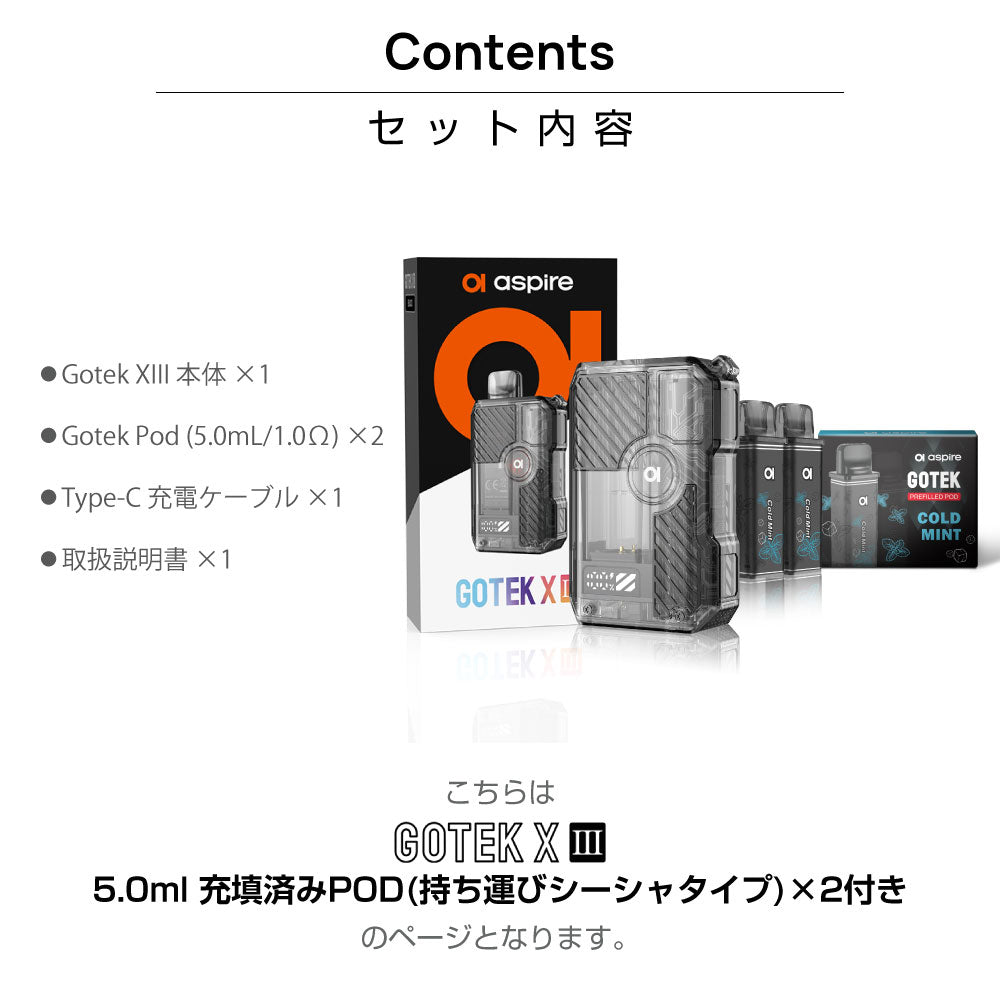 ⇒Aspire GOTEK X3(アスパイア ゴーテック エックス3) リキッド5本セットはコチラ