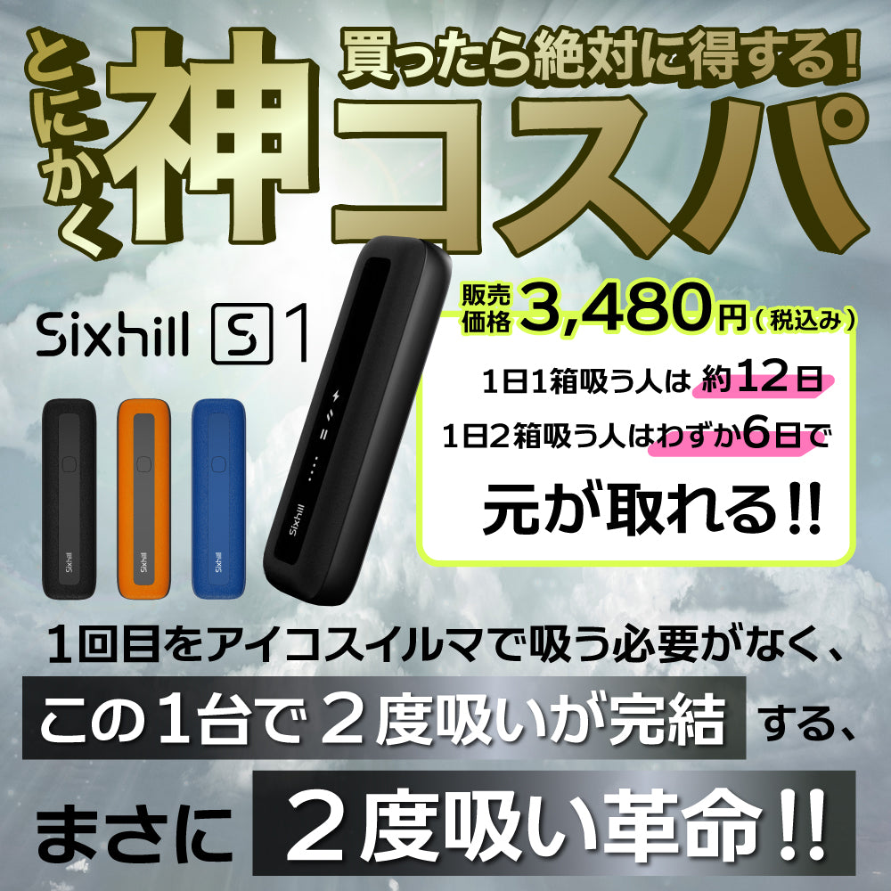 人気爆発中のTEREA(テリア)やSENTIA(センティア)のIQOSイルマ(アイコスイルマ)用スティックが ” この1台で2回吸える ” 革命的2度吸いデバイスが老舗電子タバコブランドの ” Sixhill ”(シックスヒル)から新登場!その名も「Sixhill S1」