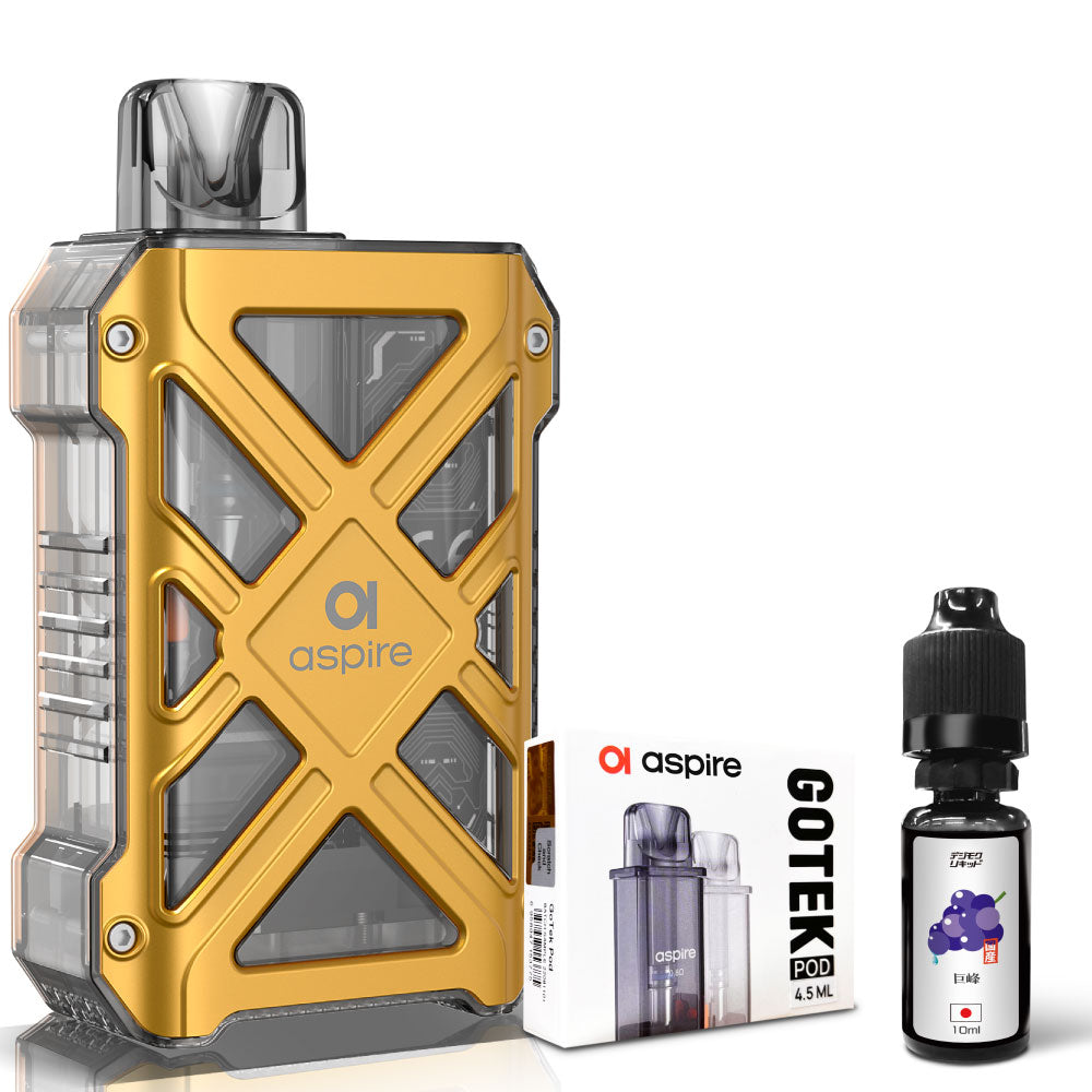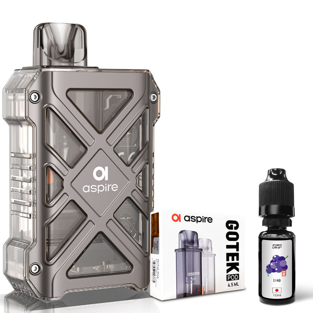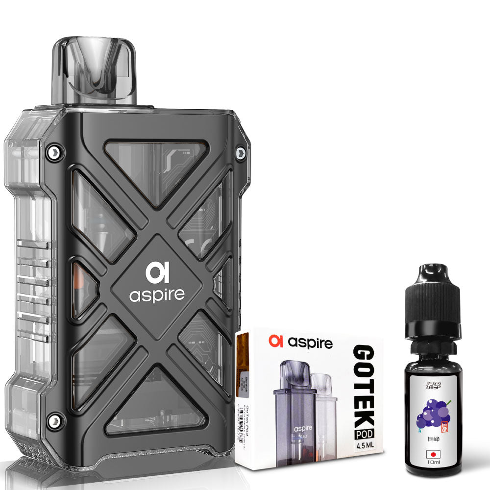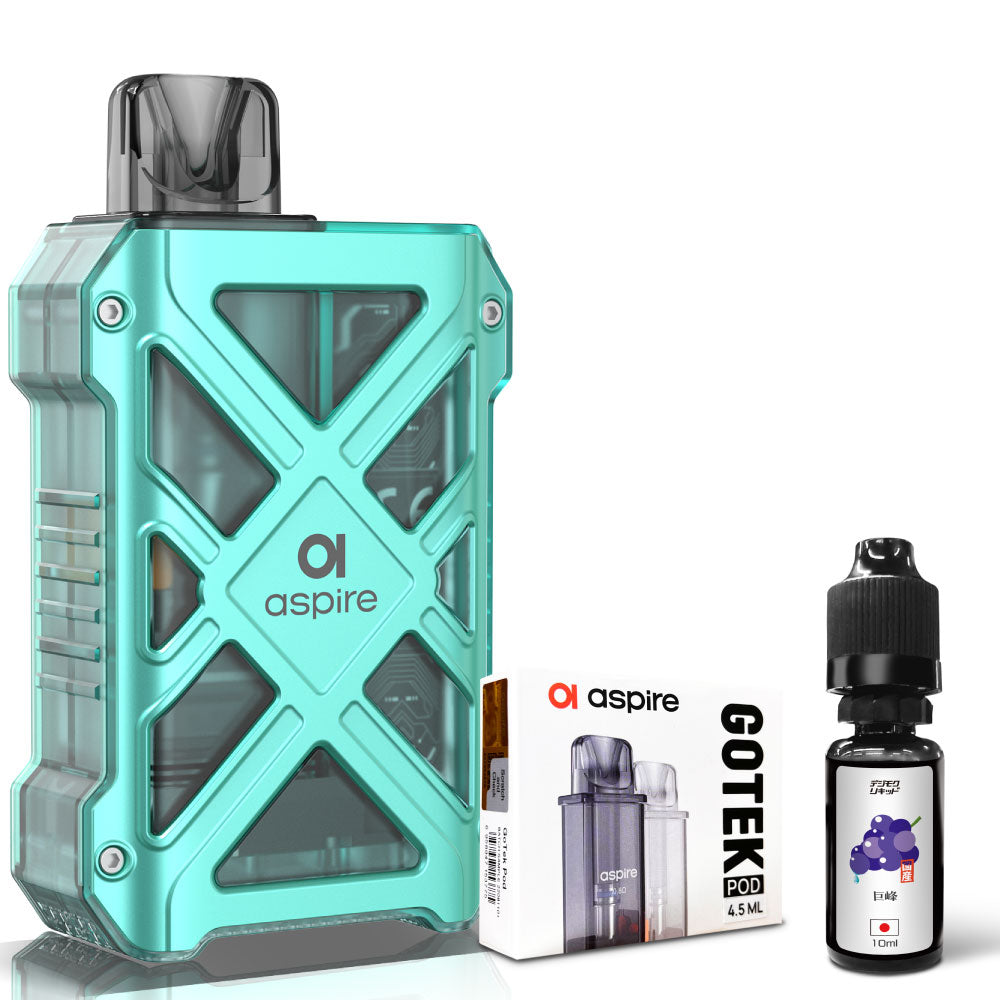 進化したGOTEK!大人気Aspire GOTEKのリキッド入りカートリッジがセットになったお得なスターターキット。 |