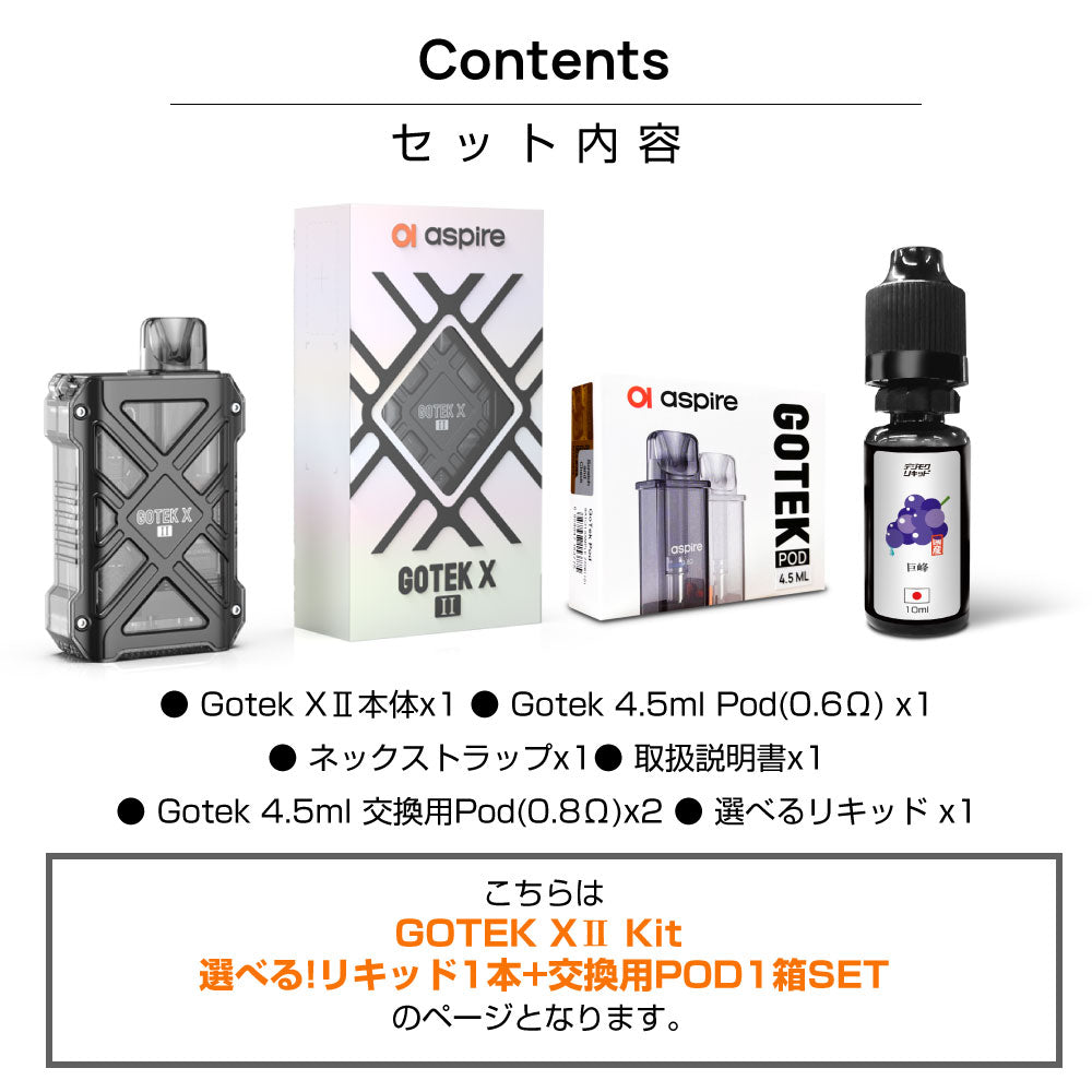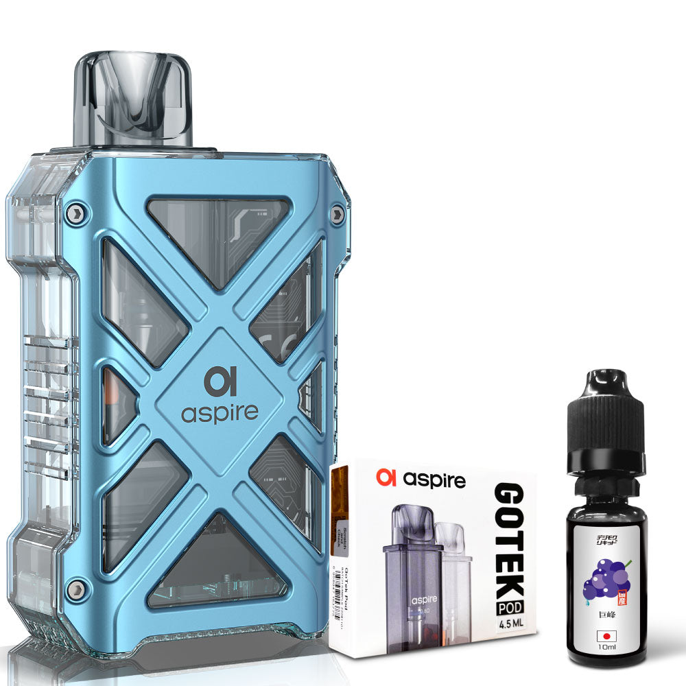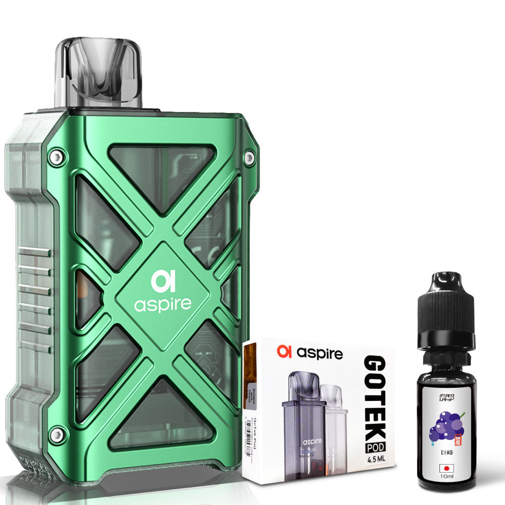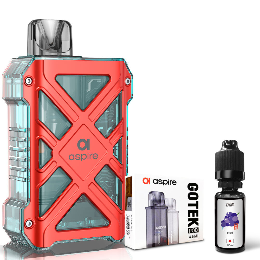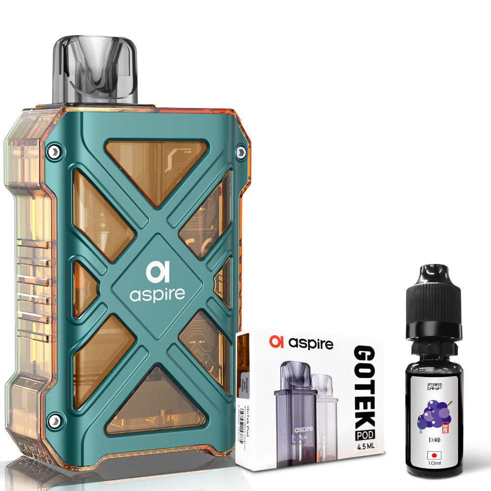 進化したGOTEK!大人気Aspire GOTEKのリキッド入りカートリッジがセットになったお得なスターターキット。 |