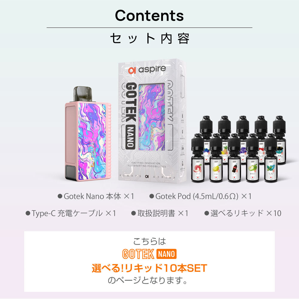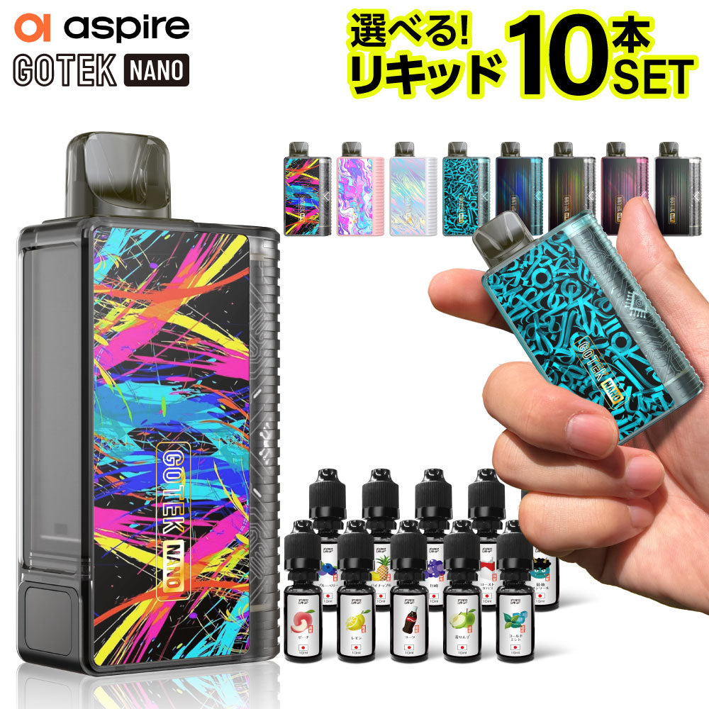遂に登場!大人気Aspire GOTEKのリキッド入りカートリッジがセットになったお得なスターターキット。 |