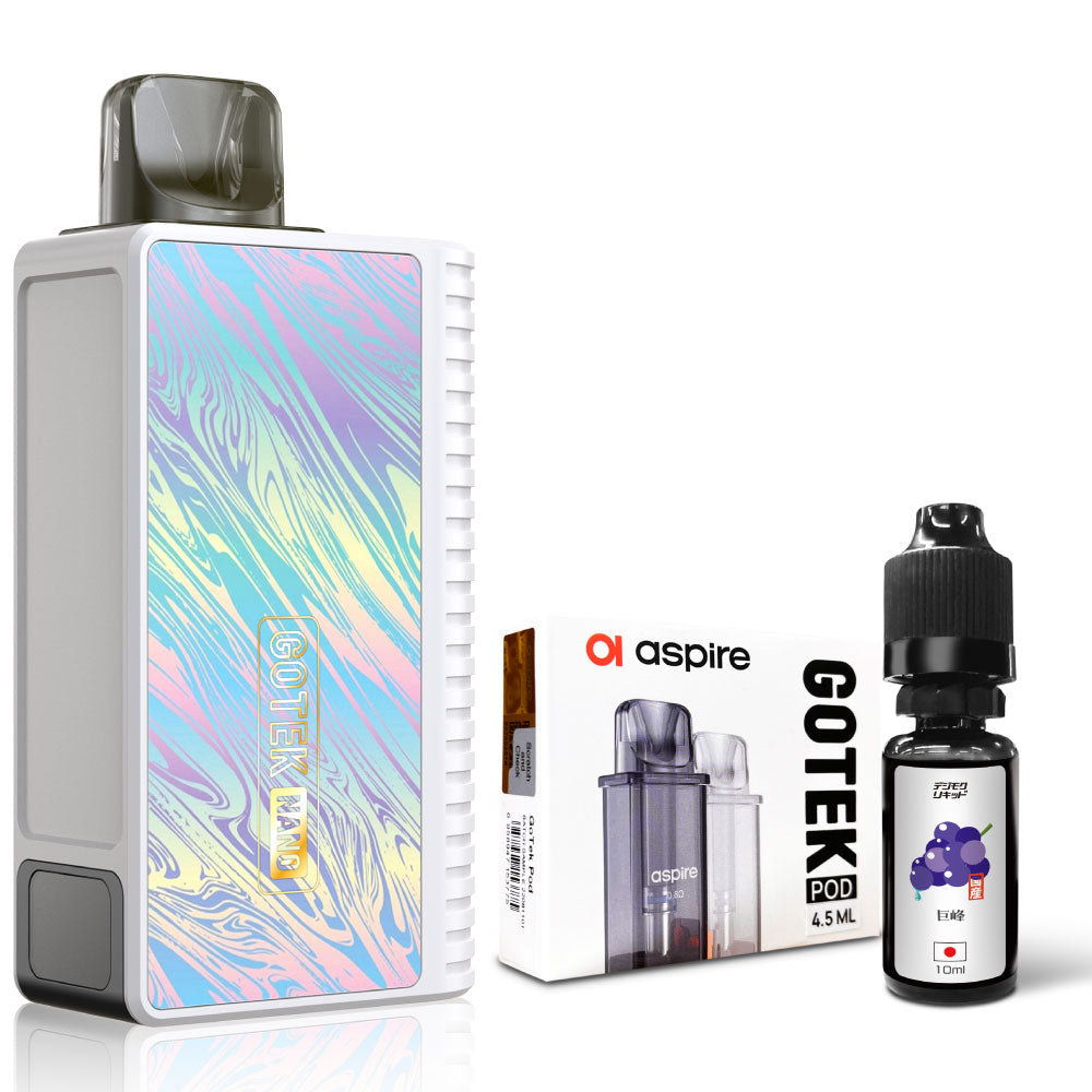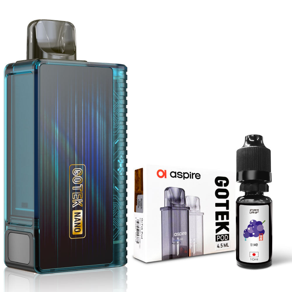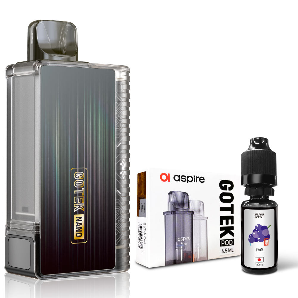 遂に登場!大人気Aspire GOTEKのリキッド入りカートリッジがセットになったお得なスターターキット。 |