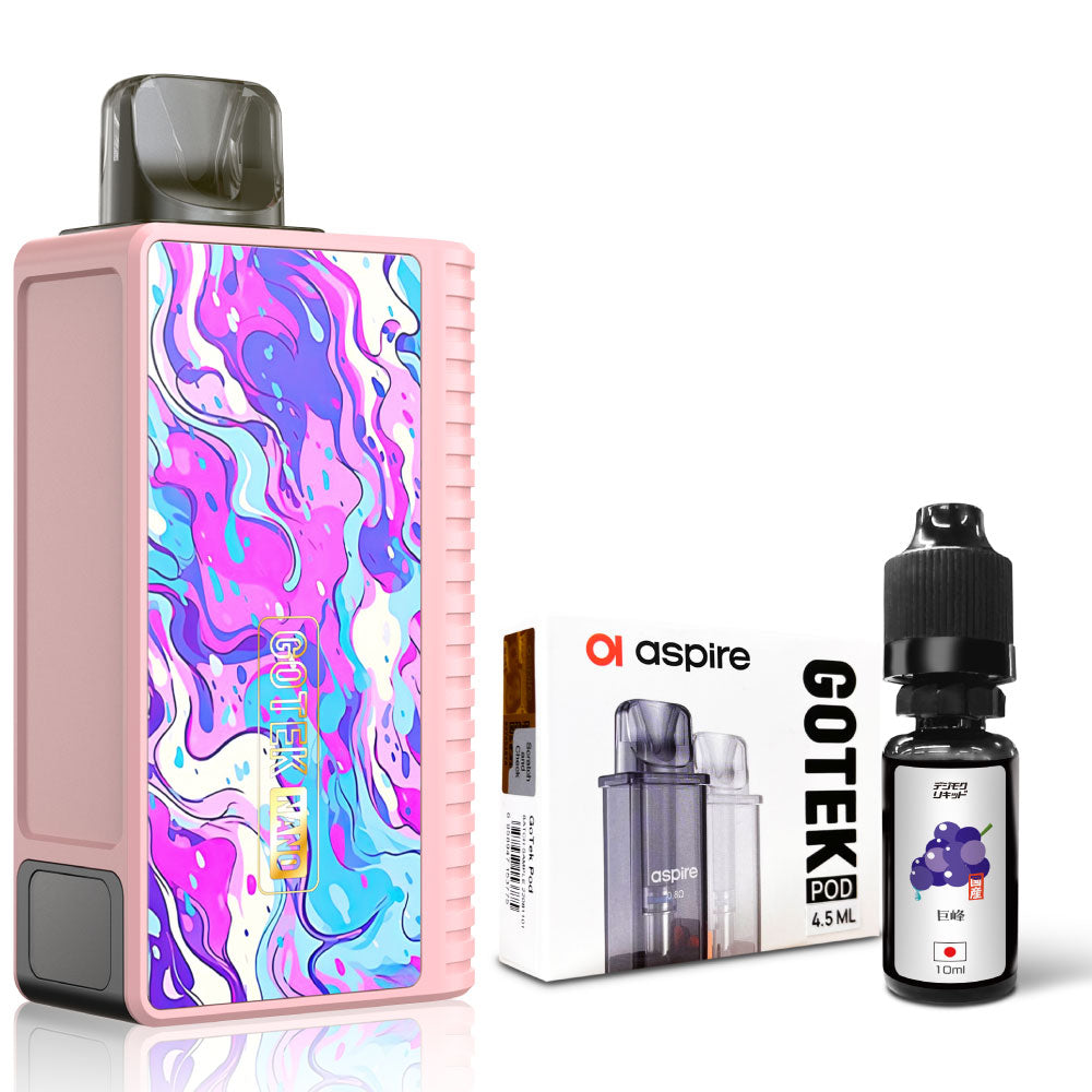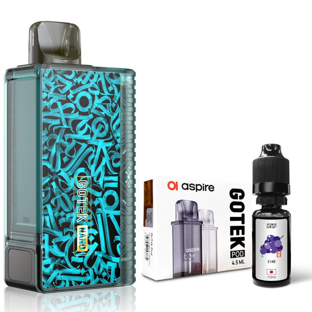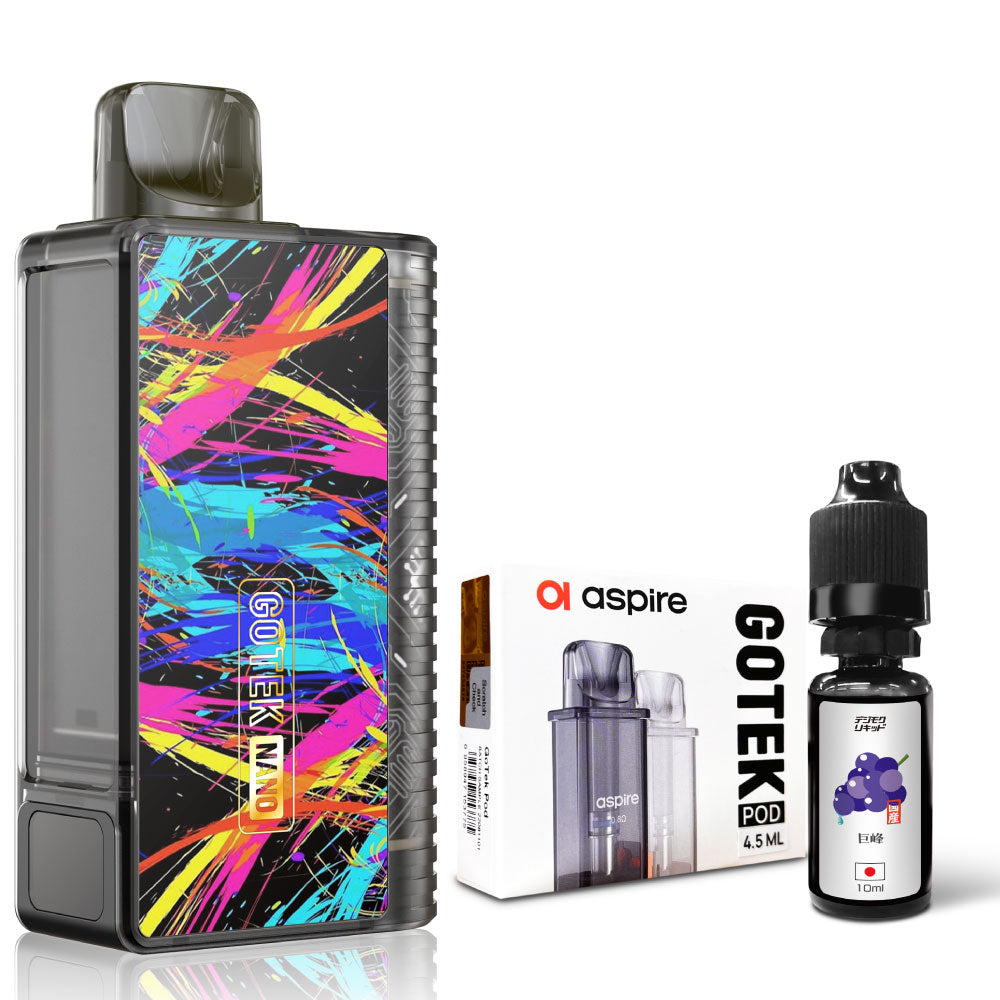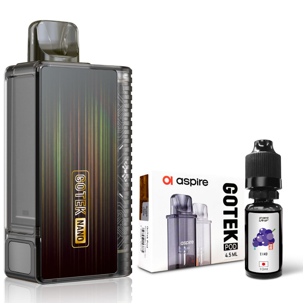 遂に登場!大人気Aspire GOTEKのリキッド入りカートリッジがセットになったお得なスターターキット。 |