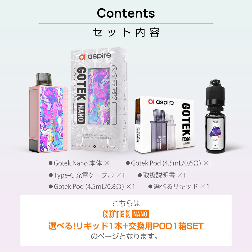 ⇒Aspire GOTEK Nano(アスパイア ゴーテック ナノ) リキッド10本セット