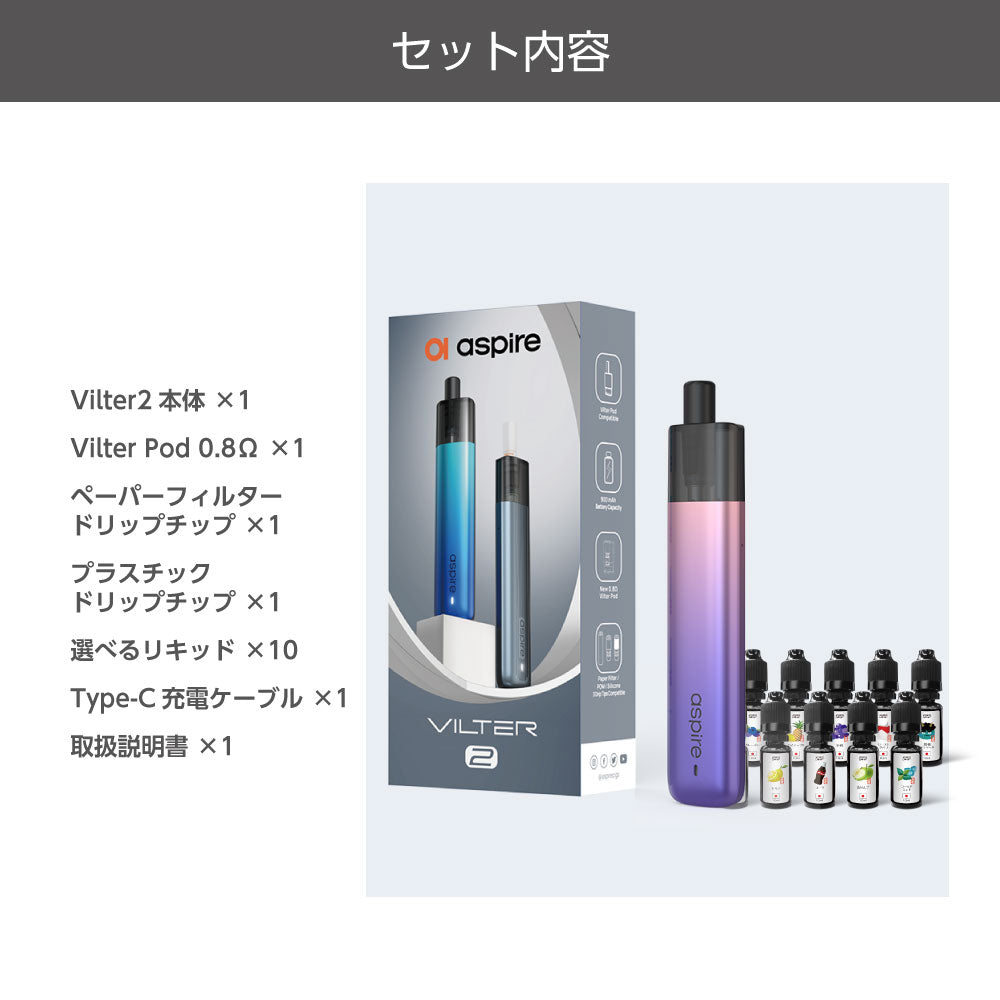 大人気電子タバコ VAPE(ベイプ)PODタイプのFavostix(ファボスティックス)やminican 3 Pro(ミニカン 3 プロ)、GOTEK (ゴーテック)シリーズなどの爆発的人気も記憶に新しいAspire(アスパイア)ブランドより、紙巻きタバコ感覚で使用できる” VILTER 2 ”(ビルター 2)が新登場!