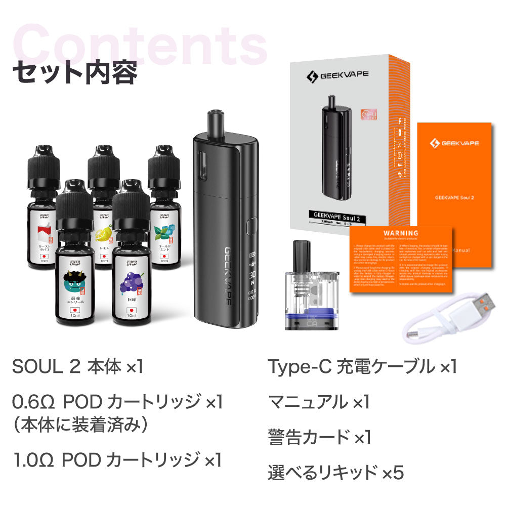 ⇒ GEEK VAPE Soul2 (ギークべイプ ソウル2 ) 交換用POD 2個とリキッド3本セットはコチラ