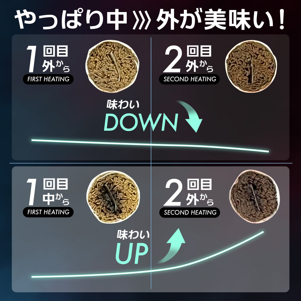 特許取得済みの独自加熱技術により、2回目も美味しくて長持ち。